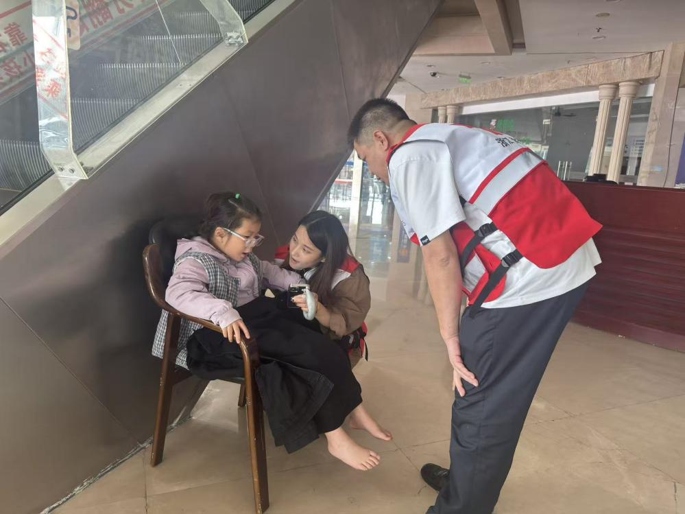 活动现场,除了有条不紊的献血流程外,还上演了温馨一幕。一名与父母走散的小女孩在献血点附近哭泣,志愿者发现后立即上前安抚,蹲下身轻声询问情况,并帮她寻找家人。在多方联系后,志愿者牵着小女孩的手,将她安全送回附近企业家长手中。这一暖心举动赢得了现场群众的点赞。