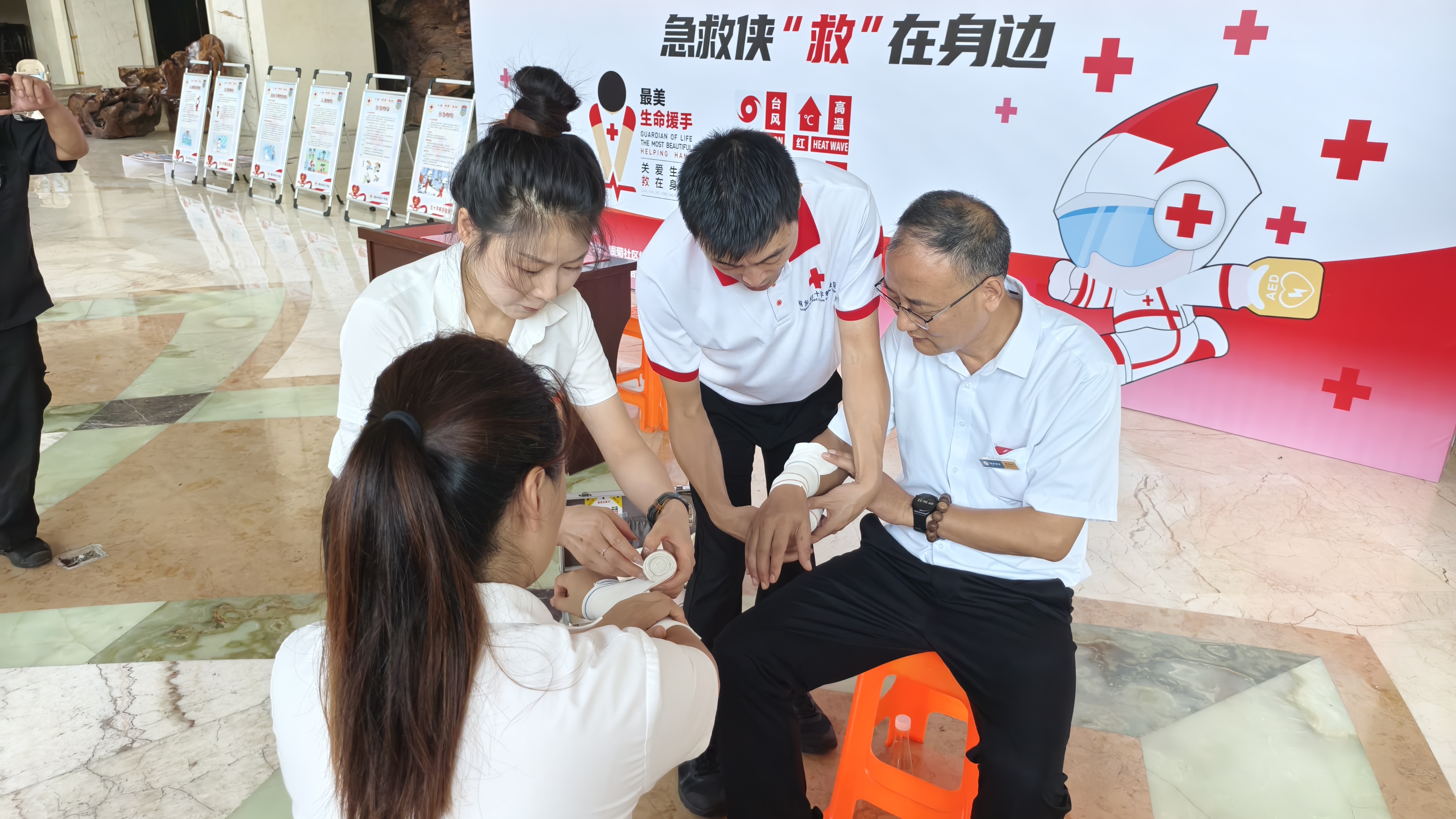 黄锋的话道出了本次“‘救’需要您,急救侠”活动举办的目标。活动由桐乡市红十字会、梧桐街道红十字会、银菊社区红十字会及红十字桐安救援共同组织,面向物业、保安、商户、环卫、外卖员等群体,招募了50名预备“急救侠”,进行应急救护知识培训,从而提升公众在突发事件中的自救互救能力。
